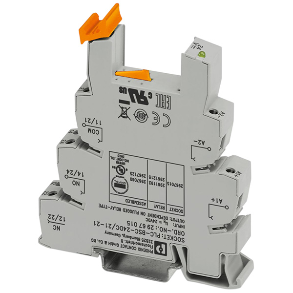 PLC-BSC- 24DC/21-21 Базовый модуль 14мм, контакты 2CO, Uвх. 24V DC, безынерционный диод, LED-индикация (жёлтый)