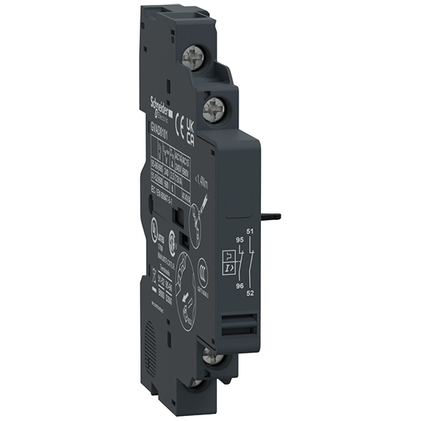 GVAD0101 Контакт сигнализации аварийного отключения 1НЗ, доп. контакт 1НЗ, боковой (крепление слева), для автоматов GV2/GV3