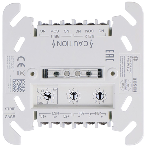 Интерфейсные модули реле высокого напряжения FLM‑420‑RHV используются для управления активацией внешних элементов, например, дымозадерживающих клапанов или вентиляторов (функция FAN), через LSN.