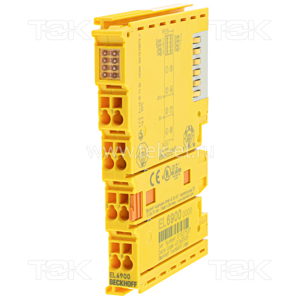 Модуль EL6900 TwinSAFE представляет собой специализированный контроллер безопасности. Он используется для реализации приложений, ориентированных на безопасность, на основе булевых значений. Для этой цели доступны сертифицированные функциональные блоки, обеспечивающие обработку безопасных входных сигналов и генерацию безопасных выходных сигналов. Функциональность этих блоков варьируется от простых булевых функций, таких как И и ИЛИ, до сложных функциональных блоков для отключения функции безопасности. Благодаря функции резервного копирования и восстановления EL6900 также предлагает простой способ замены контроллера безопасности в случае необходимости обслуживания. EL6900 может безопасно обмениваться данными по протоколу FSoE с устройствами безопасной связи (до 128 устройств). EL6900 программируется с помощью редактора безопасности TwinCAT 3 или TwinCAT 2.