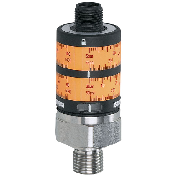 PK6524 Датчик относительного давления, со шкалой: 0…10 bar / 0…145 psi, присоединение G1/4, выходы PNP NO + PNP NC, Uпит. 9.6…32V DC, разъём М12 4-pin, корпус пластик, IP67