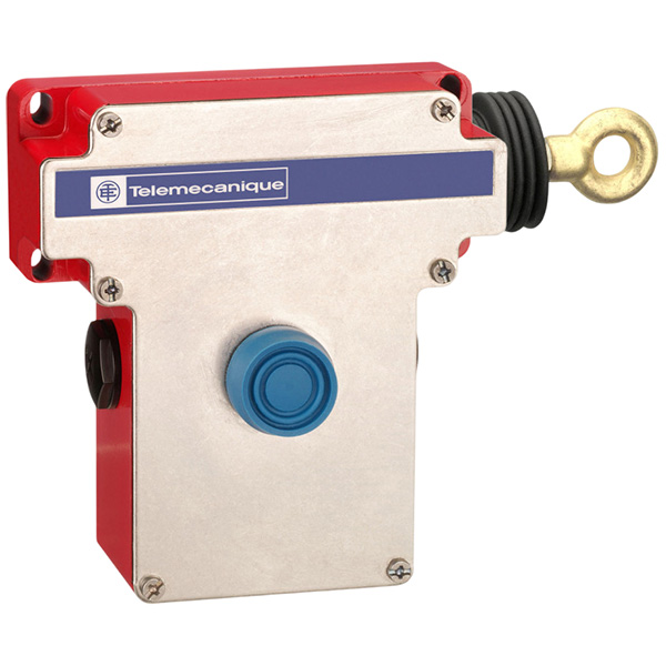 XY2CE1A250H7 Барьер (выключатель) безопасности тросовый: до 70м, крепление справа, контакты 1НО+1НЗ замедленного действия, сброс кнопкой в защитной оболочке, ввод 3 х 1/2" NPT, IP66