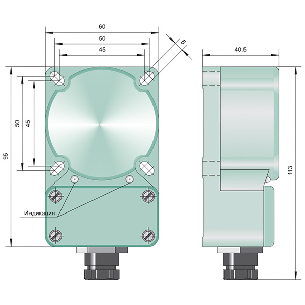 ВБИ-Ф60-40К-2113-Л Датчик индуктивный: корпус 40.5х60х95мм (выступающий) пластик, Sn=35мм, выход PNP NO/NC, Hmax. 50Hz, Uпит. 10…30V DC, LED-индикация, клеммник до 2.5мм², IP65