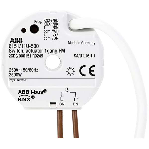 6151/11 U-500 Релейный активатор KNX (TP), 1-канальный, 16А, для скрытого монтажа