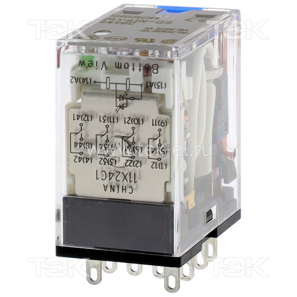 MY4IN- GS 24VDC Реле электромеханическое: контакты 4CO 6A, Uкат. 24V DC, кнопка Тест + LED и механический индикаторы