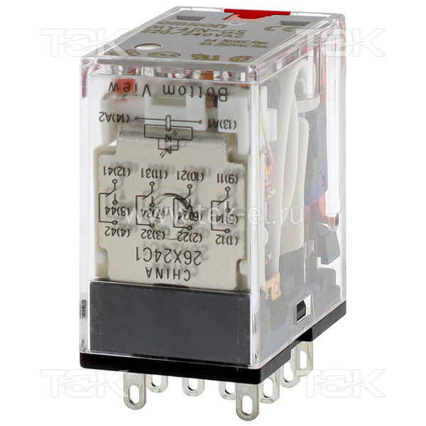 MY4IN- GS 220/240VAC Реле электромеханическое: контакты 4CO 6A, Uкат. 220…240V AC, кнопка Тест + LED и механический индикаторы