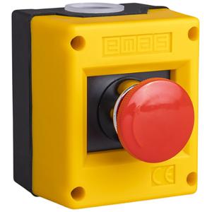 PK1SE Пост кнопочный, 1-местный, кнопка аварийная Ø40мм 1НО+1НЗ красная, корпус жёлто-чёрный пластик, IP50
