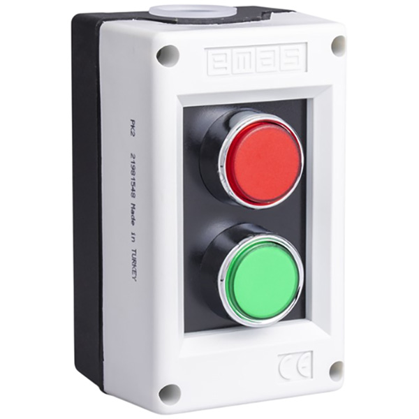 PK2 Пост кнопочный, 2-местный, кнопки 1НО+1НЗ красная / 1НО+1НЗ зелёная, корпус серо-чёрный пластик, IP50